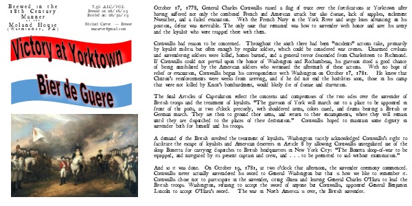 All of our beers are brewed using 18th Century methods and recipes. Each is inspired by an event or person from the American Revolution and each tells a story of the founding of our nation. >> Oh, and many will continue to be brewed AT HISTORIC SITES OR DURING REENACTMENTS! <<