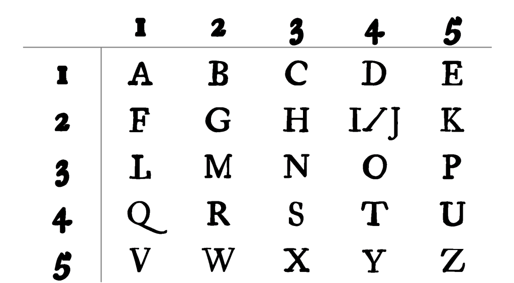 The Polybius checkerboard, is a device invented by the ancient Greeks Cleoxenus and Democleitus, and made famous by the historian and scholar Polybius, a Greek historian noted for his work The Histories, which covered the period of 264–146 BCE. Polybius was well known to the Founding Fathers of the United States and was influential on Montesquieu’s The Spirit of the Laws (see notes on Ottendorf Cypher). Polybius is the first person recorded to have argued the need for Separation of Power integral to our Constitution.