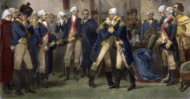 “Having now finished the work assigned to me, I retire from the great theatre of action; and bidding an affectionate farewell to this august body, under whose orders I have so long acted, I here offer my commission, and take any leave of all the employments of public life.” On December 23, 1783, then commander in chief of the Continental Army, George Washington, addressed the Continental Congress in Annapolis in order to resign his military commission. The resignation not only signified the end of Washington’s tenure as commander in chief, a position to which he was appointed to on May 9, 1775, but also Washington’s desire to return to his Mount Vernon estate as a private citizen. Americans ever since have viewed this event as a testament to Washington’s republican values, as he willingly surrendered power of the army back to the governmental body that first appointed him.