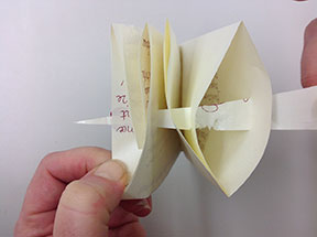 Long before email, text, and instant message, important words were passed discreetly from closed palm to palm. To keep the messages private, these hand-written notes were often elaborately folded, sealed with wax, and rigged with anti-tamper devices. The technique of “locking” letters involves folding the parchment, papyrus, or paper securely so that the letter functions as its own envelope.