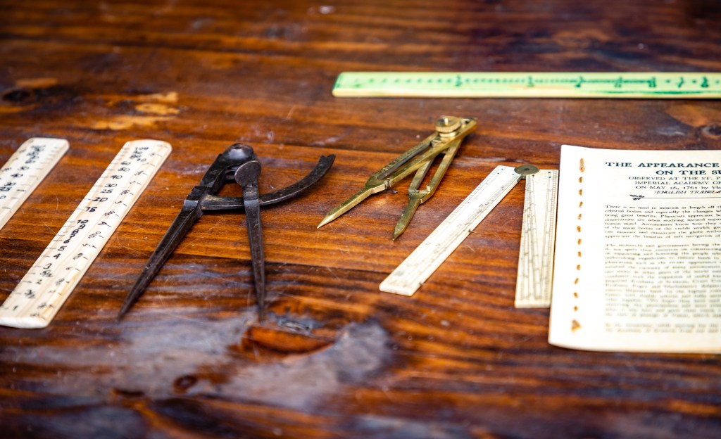 Gunter’s rule has both a linear and logarithmic scale allowing basic multiplication, division, addition and subtraction to be made by with calipers simply adding scales.